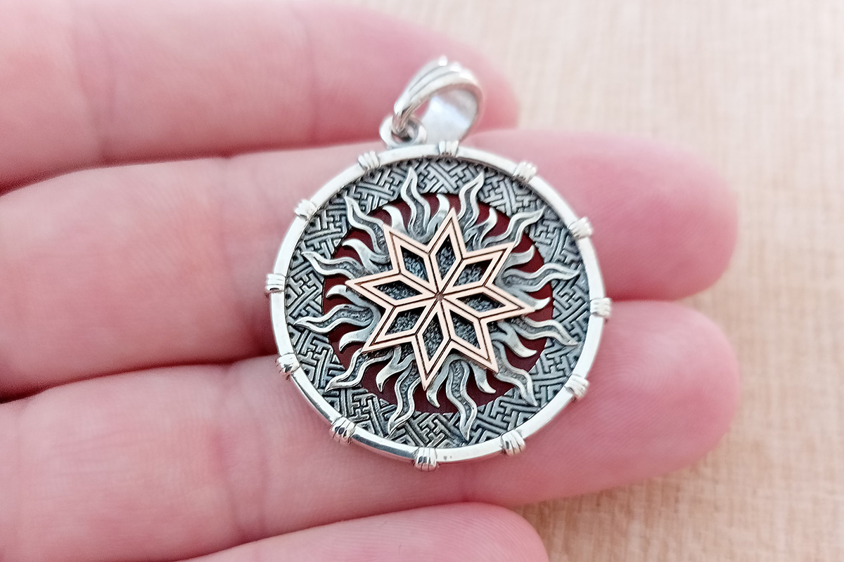 Алатырь с Солнцем (серебро с золотом), 30 мм