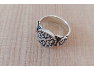 Кольцо с руническим компасом Вегвизир и рунами Тейваз (Тюр) - Путь Воина